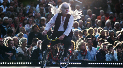 Roberto Ciulli: Ich glaube, und das gilt für Shakespeare aber auch für andere größere Autoren, dass man immer dann die Türe öffnet, um etwas herauszufinden, das mit unserer Welt, mit unserer Zeit zu tun hat. Gäbe es diese Türe nicht, bliebe immer etwas fremd für uns. Aber ich glaube, einen aktuellen Zugang zu dem Stück gefunden zu haben und dass ich dieses Märchen so erzähle, dass es etwas mit unserer Zeit zu tun hat.