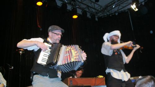 Der eingängige 2/4-Takt, von dem stets verschmitzt dreinschauenden Schlagzeuger vorgegeben, wird mit Bass, Akkordeon, Keyboard sowie Geige und Balalaika untermalt. „These boots are made for walking“, „We will Rock you“ und Lady Gagas „Paparazzi“ sind nur einige der Songs, die von den „Rentnern“ in den Humppa-Stil übersetzt werden. Lässig, mit der Fluppe im Mundwinkel und einem Bier in der Hand, haben die Finnen keine Berührungsängste, schmeißen sich mitten in die Menschenmasse. Interessant zuzusehen, wie selbst gestandene Männer aufgrund der rasanten und immer schneller aufeinanderfolgenende nHumppa-Songs einige Pausen einlegen, während Eläkeläiset selbst von Anstrengung unberührt immer waghalsigere Stunts und Verrenkungen auf der Bühne vollführen.