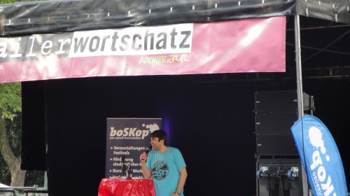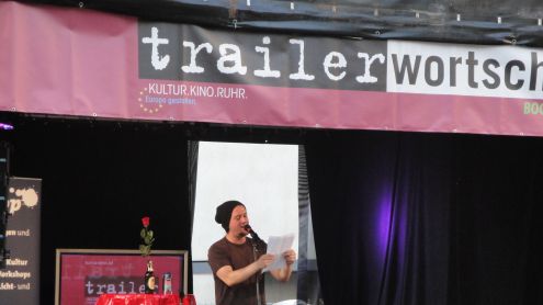 Mit Klassikern des runden Leders ging es bei Bochum Total los, oder wie Otto Rehhagel sagen würde: „Die Wahrheit liegt auf dem Platz!“ Der Abend auf der trailer-Wortschatzbühne begann mit dem Archivar solcher Phrasen, Ben Redelings. Taufrisch das Programm, quasi-experimentell der Vortrag, nahm der eingefleischte VFL-Anhänger seine ZuhörerInnen mit in das Kuriositätenkabinett aus 50 Jahren Fußball-Bundesliga. Redelings selbst ernannte „Probelesung“ traf aber nicht nur bei Fußballliebhabern auf Zustimmung. Versoffene Schiedsrichter, Profis mit Realitätsverlust und Spiele, in denen der VFL Bochum den BVB deklassierte – so viel Seltenheitswert überzeugte.