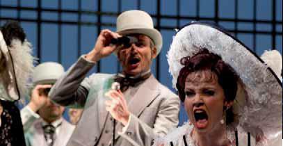 Norbert Hilchenbachs „My Fair Lady“-Inszenierung am Theater Hagen lehnt sich dagegen eher an das Original an. Kostüme (Christiane Luz) und Bühnenbild (Peer Palmowski) folgen seinem Bemühen, ohne der Kopie zu verfallen. Besonders Palmowski versteht es, mit minimalistischen Einsprengseln wie der Golfplatz-Szene im ansonsten eher traditionellen Dekor optische Reize zu setzen. Hilchenbach hat wie Hailer sein Augenmerk auf die Herausarbeitung der Absurdität des (britischen) Klassen-Dünkels gelegt. Dabei verrät er keinesfalls die Satire an die Show, sondern verzahnt beides zu einem hintersinnigen Vergnügen. Dass ihm dies so gut gelingt, liegt auch an Hartmut Volles Interpretation der Higgins-Rolle. Er spielt den Sprachforscher, der mit seinem Kollegen Oberst Pickering wettet, er könne aus der „Rinnsteinpflanze“ Eliza eine Dame von Welt machen, zwar mit einem hart an der Grenze zur „Frauenfeindlichkeit“ liegenden Touch – aber mit einem sofort überspringenden Charisma. Kristine Larissa Funkhäuser kann als Eliza mit dieser übermächtigen Präsenz nicht immer mithalten, zumal ihr bei den Liedern ab und an ihr unnötig ausgestellter Mezzo-Sopran im Wege steht. Dafür entzückt sie mit komödiantischem Talent, wenn sie mit Kieseln im Mund von Higgins sprachtherapiert wird. Wie auf den Leib geschrieben ist Werner Hahn die Rolle von Elizas trinkfestem Vater Alfred P. Doolittle, der sogar den Opernchor und die Statisterie zu einem schmissigen Tänzchen mitreißt.