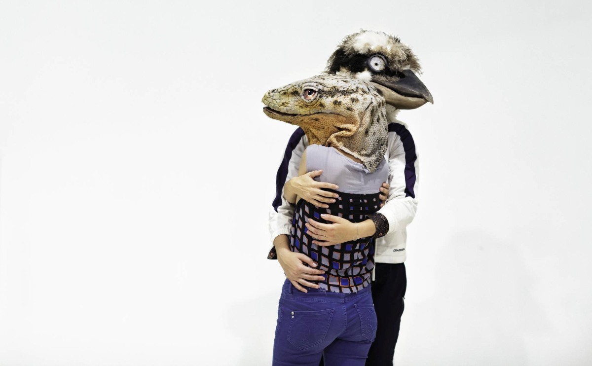 Sonia Franken ist zunächst gar nicht aufgefallen, dass sie mit dem Tierkopf wie ein „Human Animal“ aussieht. „Wir Menschen rechnen uns zunächst nicht zu den Tieren, aber mit dem Blick durch die Maske bekommt man eine andere Perspektive auf die Welt. Vor allem rückt der Mensch nun aus ihrem Zentrum“, erklärt sie.