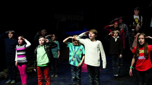 Nur eine einzige Erwachsene gibt es auf der Bühne: Puppenspielerin Lena Tempich, die als solche im Hasenkostüm allerdings nicht erkennbar ist. Was der Hase, der im Verlauf des Stücks die Kinder zur Disco in sein „Hasenloch“ lockt, uns genau sagen soll, wird nicht ganz klar. Der Choreographie des Bühnengeschehens tut er jedenfalls gut. Drei Monate lang hat Schmidt mit ihrem jungen Ensemble geprobt – und das Ergebnis kann sich absolut sehen lassen. Auch die Jüngsten bringen ihre oft gar nicht so einfachen Texte abwechselnd und im Chor souverän rüber und agieren sogar tanzend mit ansteckendem Elan.