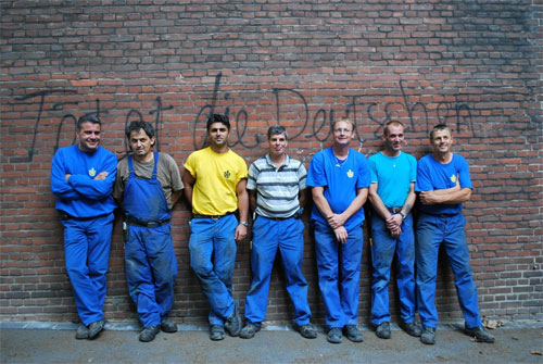 Ayla Wessel (AW): Also ich habe mich nicht gefragt, wer das an die Fassade geschrieben hat, das soll der Staatschutz ermitteln und die Polizei. Was mich persönlich interessiert hat, als ich den Satz gesehen habe, war, ob ich eigentlich auch angesprochen bin. Ich bin gebürtige Türkin, aber auch deutsch. Daher fühlte ich mich natürlich angesprochen. Und alle, die hier sind, deutsch sind oder deutsche Europäer, sind angesprochen. Nun stelle ich mir die Frage, wer sind denn überhaupt die Deutschen? Wer soll hier getötet werden? Wie sieht denn ein Deutscher aus? Muss er eine Steckfrisur haben, dann ist man Deutsch. Oder ein offenes Kleid anhaben, hochhackige Schuhe, Fingernägel rot lackiert? Die Antwort darauf sind die Fotos. Da sieht man nämlich dieses heillose Durcheinander, einen Riesen-Cocktail aus unterschiedlichen Menschen. Und da sieht man auch, wie europäisch eigentlich Deutschland ist und dass es den Deutschen überhaupt nicht gibt, schon lange nicht mehr.
