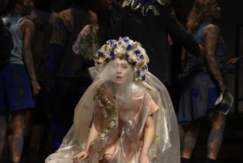 Bei aller Sozialkritik, die durchaus nicht hinein konstruiert werden muss, steht doch die Dreiecks-Liebesgeschichte zwischen Leïla, Nadir und Zurga im Mittelpunkt. Mit Dongmin Lee und Stefan Cifolelli, die sich als Leïla und Nadir schließlich finden, gibt es in Gelsenkirchen ein echtes Traumpaar zu sehen wie hören. Beide verbindet eine lyrische Wärme und große Strahlkraft der Stimme. Und sie agieren als Bühnenpaar so natürlich, wie man es nur selten in der Oper erlebt. Lees Szenen mit Piotr Prochera als Zurga geraten deutlich hölzerner. Aber – wen wundert´s – Zurga wurde schließlich auch abserviert und ist reichlich sauer. Und das wird sehr wohl deutlich. Überhaupt ist Prochera mit seinem kernigen Bariton ein glaubhafter Anführertyp, der im ganz zentralen Duett mit seinem Nebenbuhler eine sehr gute Figur macht.
