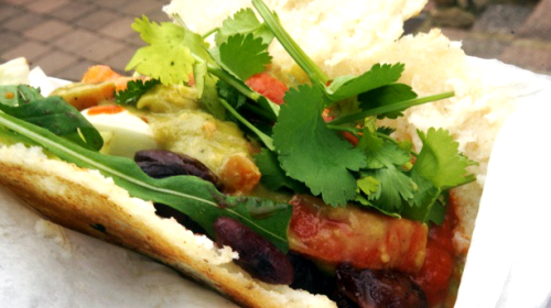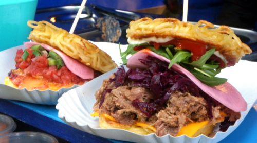 Cheeseburger war gestern – warum nicht mal einen koreanischen Kimchiburger mit frittiertem Nudelbrot von Fräulein Kimchi oder einen „Bacon geht immer“-Burger mit in Bourbon ausgekochter Speck-Marmelade von Tofino bestellen? Statt Toast dürfen russische Piroggen, Kartoffelbrot und Tacos probiert werden. Zusätzlich öffneten die Anbieter des Street Food Markets die Tore zu den kulinarischen Spezialitäten aus aller Welt. Dass es in Schweden mehr gibt als Möbel und Knäckebrot, bewiesen die Jungs von BUKFYLLA, die an ihrem Stand herzhaft gefüllte Waffeln anboten. Kaizoku und dontak kredenzten japanische Snacks – allerdings kein Sushi. Stattdessen gab es das Nationalgericht „Kare Raisu“, also japanisches Curry mit Reis, und Gyoza, frittierte Teigtaschen mit süßer oder pikanter Füllung.