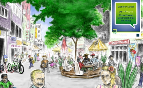 Die kürzlich vorübergegangene 21. Tour De Ruhr hat einmal mehr unterstrichen, was Zahlen schon lange dokumentieren: Der Trend und der Wille E-Mobilität als alltagstaugliche Antriebsvariante bzw. zu etablieren ist ungebrochen. 2012 rechnet der Zweirad-Industrieverband mit 400.000 verkauften E-Bikes alleine in Deutschland. Trotz des großen Zuspruchs von allen Seiten weist die Infrastruktur für Elektromobilität noch große Lücken auf und auch im alltäglichen, städtischen Leben, abseits von Tourismus und Freizeit, ist sie eher noch eine Seltenheit. Wie es gehen kann, zeigt seit Ende letzten Jahres die Viehoferstraße in der nördlichen, sich stark im Aufbruch befindenden Essener Innenstadt.