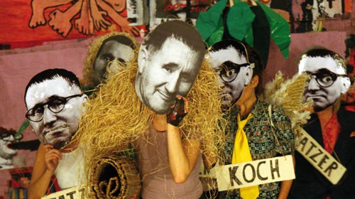 Einer dieser Fatzermaniacs ist Alexander Karschnia. Zusammen mit der Gruppe andcompany&Co. und brasilianischen Schauspielern hat er in São Paulo die Produktion „FatzerBraz“ erarbeitet. Brecht sei in Brasilien viel lebendiger als in seinem Mutterland, auch wenn er manchmal etwas zu ernst genommen würde, erzählt Karschnia. Die Neuübersetzung von Heiner Müllers „Fatzer“-Fassung ins Portugiesische bot die Möglichkeit, mit der einheimischen Freien Szene, die politisch bewusster und aktiver sei als die Deutsche, in einen lebendigen Austausch zu kommen. Und so entstand eine Produktion, die sich auf das brasilianische Sozialprogramm „Null Hunger“, auf die Großstadtregion São Paulo sowie die Stadtguerillatheorie von Carlos Marighela bezieht und Brecht einem tropikalischen Remix unterzieht.
