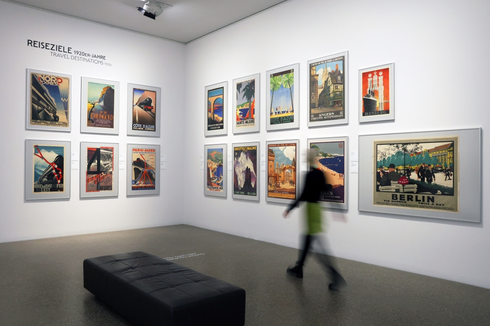 Der Parcours durch elf Abteilungen wird selbst zur Reise durch Raum und Zeit sowie mehreren Kulturgeschichten: Tourismus, Sehnsuchtsorte, Verkehrstechnik, Werbung und Plakatgestaltung im Wandel, inklusive Würdigung von elf Plakatkünstlern, die auf Zielgruppenfang einst meisterlich zu Stift und Pinsel griffen. Der Clou: Als literarische Reisebegleitung unterhält uns Felicitas Hoppe mit flott pointierten „Kopfreisen“, die man im Begleitheft selbst lesen oder sich via App von der Autorin vorlesen lassen kann, während man von Bild zu Bild durch die Jahrzehnte schreitet. Bis in die Gegenwart. Moderater Fluglärm schallt durch die Räume: In einem Bereich behandeln Studierende Flugreisen im Klimawandel. Zum Schluss geht es sogar noch höher hinaus: NASA-Plakate im charmanten Nostalgiestil bewerben 2019 die Grand Tour zu den Sternen. Auf geht‘s! Auch wenn der Intro-Text zur Ausstellung mahnt, dass Plakate heute neu zu lesen sind und sich der Blickwinkel auf das Reisen ändert: Die Bilder sind Fernweh-„Futter“. Also nichts wie hin … und weg.