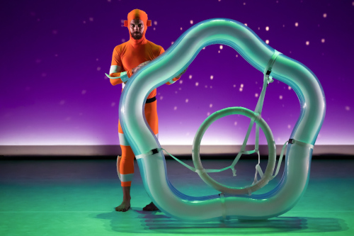 Das aktuelle Stück der Zirkus/Tanz-Schnittstelle Overhead Project, das zuletzt als Work-in-Progress gezeigt wurde, erlebt nun auf dem Festival seine Premiere. In „Circular Vertigo“ geht Mijim Kim eine tänzerische Beziehung zu einem Turnbock ein, der als massives Gerät von der Decke hängt und das Zentrum einer Manege bildet.