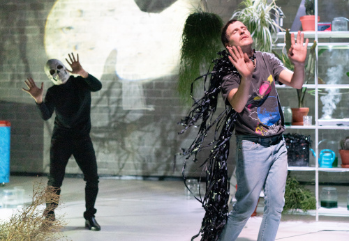 Beim letzten Mal, als das Festival im Jahr 2019 stattfand, beschäftigte sich die Welt noch mit gänzlich anderen Themen. Das El Cuco Projekt widmet sich mit „Just Before Falling“ der übergreifenden Thematik des Fallens – das trotz gleichem Ablauf doch immer unterschiedliche Ergebnisse erzielt. Alltagsroutinen werden so von den mit gruselig-realistischen Tierköpfen bekleideten Performern hinterfragt.
