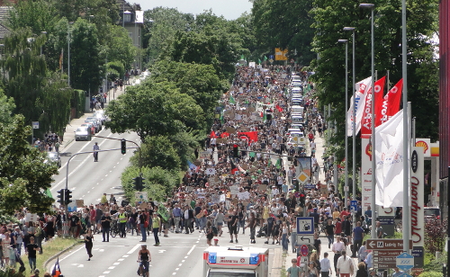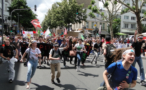 Am Freitag selbst ziehen gleich mehrere Demonstrationszüge in Form eines Sternmarsches durch die Aachener Innenstadt: Gestartet wird etwa am Hauptbahnhof, an der RWTH Aachen, …da und dort… – aus dem benachbarten Vaals in den Niederlanden stößt außerdem eine Fahrraddemo noch dazu. Alle Züge sammeln sich schließlich am Kundgebungsort am Tivoli-Stadion. Aufgrund der Verteilung auf das ganze Stadtgebiet ist es für die jungen Veranstalter zunächst schwierig, die Zahl der Demonstranten abzuschätzen. Am Ende des Tages jedoch pendeln sich die offiziellen Zahlen auf einen Wert von 40.000 Teilnehmern ein.