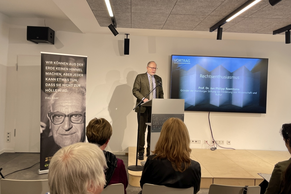 Ein besonderer Höhepunkt war die Lesung aus Fritz Bauers Texten durch die Schauspielerin Karin Moog und den ehemaligen Münchner Oberbürgermeister Christian Ude. In einer eindrucksvollen Inszenierung wechselten sich die beiden in einem Dialog mit den Passagen ab, begleitet von projizierten Originalfotos aus dem Leben Bauers. Diese Verbindung von Wort und Bild schuf eine intensive Atmosphäre und ließ das Publikum tief in das Denken und Wirken des Namensgebers eintauchen. „In Zeiten, in denen Demokratie unter Druck steht, ist ein solcher Ort nötiger denn je“, betonte der Bochumer Oberbürgermeister Eiskirch in seiner Rede. Die Veranstaltung würdigte Bauers Vermächtnis und die Bedeutung des Forums als Ort der Aufklärung.