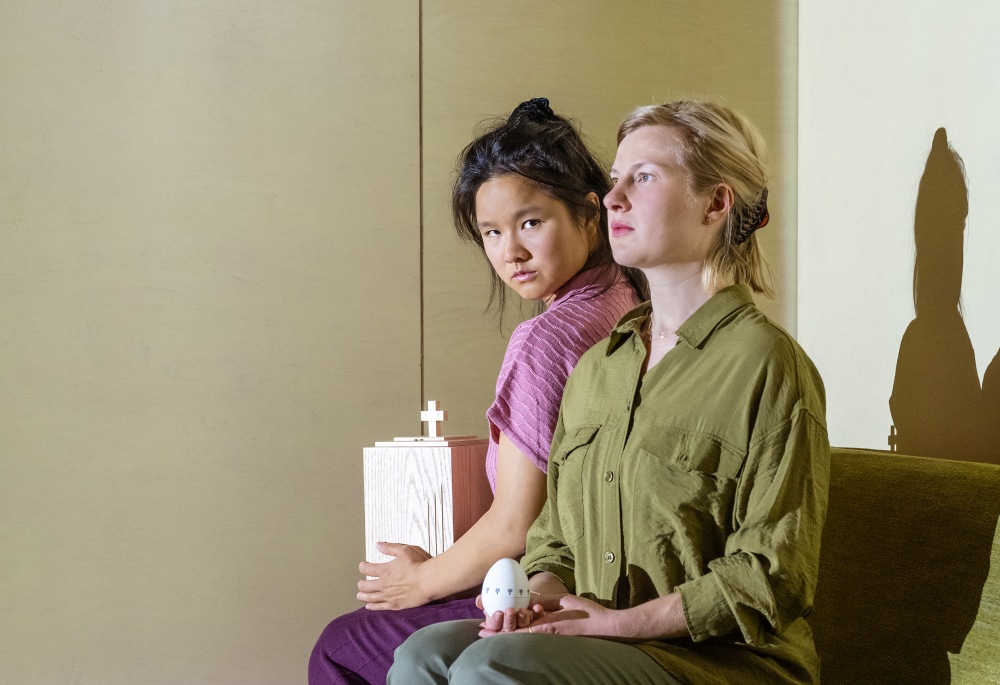 Darin taucht immer diese junge Angestellte auf, die sich überall und scheinbar von allen mit der Kinderfrage konfrontiert sieht, auch deshalb hat sie wohl immer ein Ei dabei. Trotz des andauernden Gruppenzwangs hat sie anscheinend nichts gemein mit der alttestamentarischen Hanna, die keine Kinder bekommen kann oder mit der Frau, die heimlich Pornos schaut und nicht weiß wohin mit dem Baby. Die Kernfrage bleibt, ob von Frauen nicht qua Geschlecht erwartet wird, dass sie ihren Körper verleugnen und gleichzeitig feiern. Und was die zwei Männer im Stück beizutragen haben, wird die Premiere am 1. September zeigen, an dem meteorologisch der Herbst beginnt und die Störche langsam nach Afrika abfliegen, aber das muss ja nichts heißen.