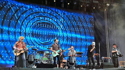 Fury in the Slaughterhouse hingegen starten mit „Good Day to Remember“, einem Song vom 2021 erschienenen Album „Now“, was inhaltlich schön den Bogen spannt, bis das Konzert irgendwann in „Won’t Forget These Days“ münden wird. Dazwischen gibt es einen Best-of-Mix der vergangenen Jahrzehnte. Schon sehr früh kommt mit „Radio Orchid“ einer ihrer größten Hits, den müssen sie sich nicht aufsparen, denn das Publikum geht von Beginn an mit, ist textsicher und sangesfreudig. Die Wiedersehensfreude ist auf und vor der Bühne deutlich spürbar. Fury liefern eine runde Show für die ganze Familie, ohne viele musikalische Ecken und Kanten, aber mit einer riesigen Spielfreude. Während bei Selig eindeutig die Rampensau Jan Plewka im Mittelpunkt steht und selbst ein begnadeter Gitarrist wie Christian Neander meist mit geschlossenen Augen im Hintergrund bleibt, präsentieren sich Fury viel mehr auch optisch als Einheit. Natürlich nutzt auch Kai Wingenfelder den Steg, der ins Publikum ragt, und begibt sich sogar für einen Song ins Publikum, aber immer wieder gibt er den übrigen Bandmitgliedern reichlich Raum, sei es Bruder Thorsten Wingenfelder an Gitarre und Gesang oder Multiinstrumentalist Gero Dmek.