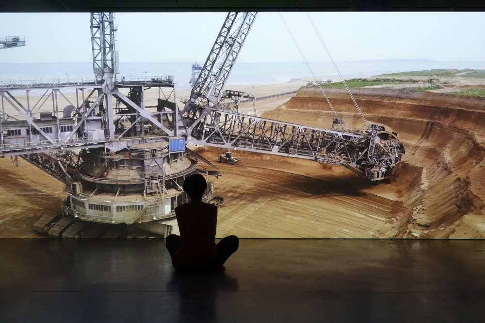 Rund 270.000 Tonnen CO2 stößt der von RWE betriebene Tagebau Hambach jeden Tag aus. Noch bis 2030 soll hier gebaggert werden. In Erkelenz gräbt sich der Abrissbagger in den Immerather Dom – das letzte noch stehende Gebäude im Dorf, bevor auch hier der Tagebau Garzweiler den Boden verschlingen wird. Ganze zwölf Dörfer hat das Braunkohle-Abbaugebiet bereits unter sich begraben. Synchron zum Film bewegen sich wabernde Linien auch über die Bäume hinter dem Zechengelände und binden die umliegende Natur mit ein – Umweltzerstörung ist nicht begrenzt auf einen Ort, sie setzt sich fort und breitet sich aus, wird so unmissverständlich.