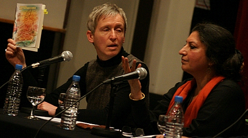 Spannend ist, dass das Werk diese Polarisierung nicht mitmacht: Die drei Hauptschauplätze sind das private Heim, ein Hindu-Tempel und die Universität – der Gegensatz von Religion und Vernunft wird hier analysiert, nicht der konstruierte Gegensatz zweier Religionen. „Es ging mir auch nicht um eine sorgfältige Ausbalancierung“, erklärte die Autorin. Was sie dadurch schafft, ist mehr als die Darstellung eines bestimmten Konflikts – sie deckt ganz alllgemeine Mechanismen von Ideologie und Macht auf: In einer Stelle des Romans montiert sie das nationalistische Gezeter im Hindu-Tempel parallel zu den Seminarstunden in der Universität, und alles mündet in der Frage: „Unterscheiden sich beide Seiten nur dadurch, dass die einen aus den gleichen Bestandteilen Aussagesätze bilden, und die anderen Fragen?“