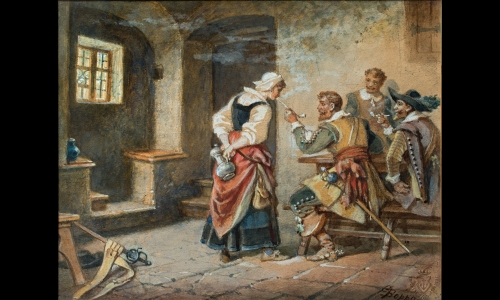 Eigentlich genauso interessant wie die Sammlung selbst ist jetzt, in der Ausstellung zum 100. Jubiläum ihrer Schenkung, die Präsentation. Die Vitrinen sind nicht nur Behältnisse, sondern lassen in ihrer Transparenz die Halle licht und weit erscheinen und geben zugleich Laufwege vor. Die Gegenstände sind darüber hinaus auf Sockeln und an der Wand in Gruppen präsentiert. Auf Texttafeln werden dazu übergeordnete, museologische Fragen aufgeführt. Das ist so didaktisch wie es sein muss, um für die Museumsarbeit überhaupt – die konservatorischen Gesichtspunkte und Aspekte der Präsentation – zu sensibilisieren. Und es bleibt aufmerksam gegenüber den Sammlungsgegenständen selbst, die auf jeweils angemessene Weise vorgestellt werden. Neben all den Gebrauchsobjekten und den Textilien und sakralen Skulpturen findet sich etwas abseits eine Wand mit Gemälden der Düsseldorfer Malerschule, freilich nicht von deren Hauptvertretern. Innerhalb der Ausstellung ist das fast zu vernachlässigen. Aber dann entdeckt man in der Reihe der Bilder doch eine kleine Winterlandschaft, die Gustav Lübcke selbst gemalt hat – eine nette Geste von Diana Lenz-Weber an ihren Vorgänger als Ausstellungs- und Sammlungskurator.