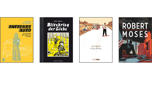 Pierre Christin, vor allem durch seine Jugendserie „Valerian & Veronique“ und seine Zusammenarbeit mit Enki Bilal bei der Reihe „Legenden der Gegenwart“ bekannt, widmet sich mit „Robert Moses – Der Mann, der New York erfand“ dem Leben desjenigen Städteplaners, der von 1930 bis 1970 die Entwicklung New Yorks zur modernen (Auto-)Stadt entscheidend prägte. Der anfängliche Respekt für Moses' frühen Weitblick weicht zunehmend einer Kritik an dessen Ignoranz gegenüber der Bevölkerung. Olivier Balez illustriert das Biopic farbenfroh und anschaulich. Die dem Genre immanenten Schwierigkeiten, im Zeitraffer und einzelnen Episoden durch die Zeit hasten zu müssen, hat der Band weitgehend im Griff (Carlsen). Pünktlich zum Jubiläum des Mauerfalls erscheint „Treibsand“ von Alexander Lahl, Max Mönch und Zeichnerin Kitty Kahane. Nach ihrer Doku-Fiction „17. Juni. Die Geschichte von Armin und Eva“ wagen sie sich nun auch auf fiktionalem Weg an das Jahr 1989: Der amerikanische Journalist Tom ist als Korrespondent in Berlin. Wenn welthistorische Ereignisse anstehen, bekommt er regelmäßig Zahnschmerzen. Gerade werden sie immer unerträglicher, da lernt er eine ehemalige Ostberlinerin kennen: Zwischen Liebe, Politik und Zahnarztstuhl gerät er in den surrealen Strudel der Ereignisse. Der Erzählansatz birgt einige Überraschungen und Turbulenzen und ist voller hanebüchener und sehr lustiger Ideen (Metrolit).