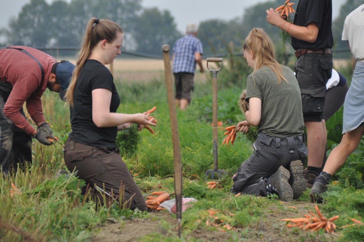 Denn für den Bauernhof stellt sich erst an diesem Wochenende heraus, wie er für das kommende Jahr planen kann. Das Prinzip: Interessierte bieten eine Summe für die Ernteanteile, wodurch eine Abnahme garantiert ist. Produzierende und Verbraucher:innen teilen sich bei der Solidarischen bzw. gemeinschaftstragenden Landwirtschaft die Ernterisiken. Der Hof kann damit unabhängig von den üblichen Marktschwankungen agieren und auf eine für Mensch und Natur schädliche landwirtschaftliche Praxis verzichten.
