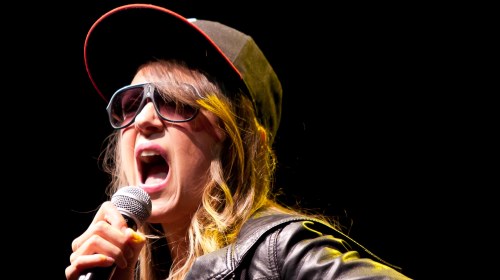Dann endlich ist es soweit und die Ausnahmekünstlerin aus Köln betritt mit ihrer Single Pussy Terror die Bühne. In einer Kombination aus schickem Abendkleid und Ghettostyle heizt Carolin Kebekus dem Zeltfestival-Publikum so richtig ein, um dann in den folgenden, gut zwei Stunden Programm von Trash-TV, über Masturbation und das Frauenbild im Allgemeinen zu sprechen.... verzeihung, zu pöbeln und zu schimpfen.