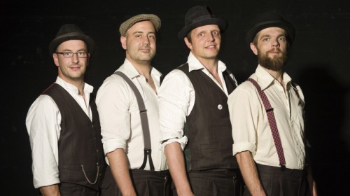 Vier Herren in schicker Garderobe bereiten momentan eine Reise vor – eine Reise durch die Musik. Am kommenden Freitag bringen Musik for The Kitchen ihr Publikum im Grammatikoff in Duisburg bis zu einhundert Jahre zurück in die Vergangenheit. Akustikgitarre, Kontrabass, Akkordeon und Besenschlagzeug im Gepäck, interpretiert die Band alte Lieder, Klassiker und aktuelle Hits auf ihre ganz eigene Weise. Genregrenzen gibt es für Musik For The Kitchen keine, weder bei der Songwahl noch bei der Umsetzung. Stets präsent ist aber der Hang zum Swing und zum „Vintage-Sound“. Mit Humor und Ironie wollen Musik For The Kitchen die Zuschauer auf die günstigste Zeitreise aller Zeiten begleiten – auf eine kostenfreie.