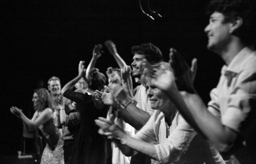 Die fünfzehnn Darstellenden in „CLAP“ sind bereit, sich zu verausgaben und Schwielen an den Händen in Kauf zu nehmen: Die jubelnde Laolawelle, das Höflichkeitsklatschen, das lautlose Händewedeln (großer Lacher und kurze Erholung für die Handflächen). Aber woher kommt eigentlich dieses kollektive „Energie-Entladen“ am Ende einer Vorstellung? Seit wann gibt es diese Konvention? Und wer hat sie erfunden?