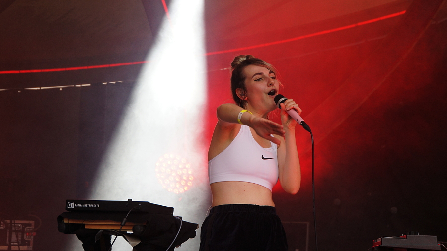 Das ist alles gut und schön, aber die beste Band des Festivals spielt am dritten Festivaltag abseits vom ganz großen Trubel auf dem KAP am Ende des Bermudadreiecks. Zackig kommen Gurr auf die Bühne. Ob da jetzt sechs oder 6.000 Menschen zuhören, scheint Leadsängerin Andreya Casablanca und Laura Lee Jenkins wurscht zu sein. Bei Gurr sind alle willkommen, alle können genauso gut zur Hölle fahren. Das ist nicht böse gemeint, sondern eine Haltung, die dem schnörkellosen Garagesound der Band entspricht.