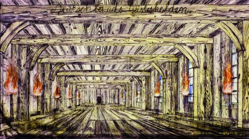 Anselm Kiefers monumentales Bild „Deutschlands Geisteshelden“ (1973), auf das man in der Küppersmühle frontal zuläuft, ist ein Schlüsselwerk dieser Ausstellung. Trotz seiner graphischen Wirkung mehr Malerei als Zeichnung, zeigt es eine riesige Dachkammer, die perspektivisch in die Tiefe fluchtet. Die brennenden Fackeln an den Seiten sind die einzige Farbigkeit im Bild. Das Gebälk schließt den Raum atmosphärisch dicht und hermetisch zusammen, als konserviere er ein Geheimnis für die Ewigkeit. Oben, über den Dachbalken ist von Hand der Titel geschrieben, unten, auf den Bohlen stehen klein die Namen von „Geisteshelden“ des 19. Jahrhunderts wie Hölderlin, Böcklin, Stifter. Dazwischen als einziger Künstler der Gegenwart: Joseph Beuys. – Für Kiefer ist Beuys der bedeutendste Künstler des 20. Jahrhundert; zu ihm ist er 1971 aus dem Odenwald nach Düsseldorf gefahren und fühlte sich von ihm bestätigt. Beuys wurde für Kiefer (der zuvor an der Karlsruher Akademie studiert hatte) zum Lehrer und Mentor, ohne dass sich die beiden oft sehen mussten … Umso mehr überrascht es, dass die zwei Künstler, die mit ihren Ausstellungen in Amerika wesentlich zur internationalen Etablierung der deutschen Kunst beigetragen haben, noch nie in einer dialogischen Ausstellung präsentiert wurden. In der Küppersmühle wird dies nun anhand von Arbeiten auf Papier nachgeholt.