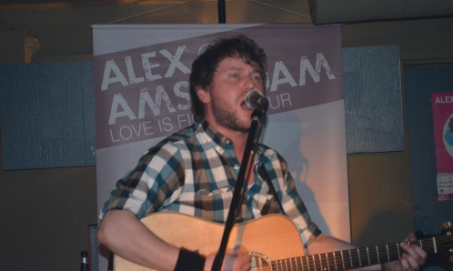 Amsterdam hatte es im Anschluss von Beginn an merklich schwer, das mit viel Mühe erworbene Publikum für sich zu gewinnen. Dies lag sicher auch mit daran, dass Amsterdams Songs in Bandformation deutlich stärker herüberkommen als mit ausgestöpselter Akustik-Klampfe. Hauptgrund war aber sicherlich das doch sehr zurückhaltende Publikum, welches sich nun gänzlich auf Bier, Zigaretten und auszutauschende Wochenenderlebnisse zu konzentrieren schien. Nur einige wenige der gut 30 Anwesenden trauten sich den Sicherheitsabstand vor der Bühne zu verringern, um den handwerklich einwandfreien Songs des dauerinbrünstigen Songwriters mehr Aufmerksamkeit zukommen zu lassen. Amsterdam ließ sich trotz der mäßigen Stimmung nicht beirren, spielte ein souveränes Set inkl. neuem Song und einer Coverversion von Two Door Cinema Club und wusste dem Publikum mit passenden, sympathischen Ansagen zu begegnen: „Ich weiß es ist Dienstag. Hört einfach ein wenig meine Musik und seid ein bisschen betrunken“. Gesagt, getan!