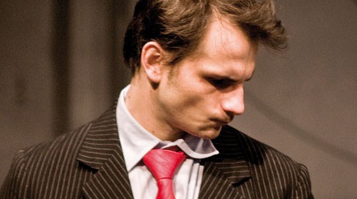 Unvermittelt wird ein unbescholtener Bürger zum Mörder: Ein Staatsanwalt – erfolg- reich, verheiratet, gesellschaftlich angesehen – greift zur Axt und träumt den tödlichen Traum von der absoluten Freiheit. Er tötet je- den, der sich ihm in den Weg stellt – schein- bar ohne Motiv, wider alle Konventionen und Gesetze. Doch Graf Öderland ist kein Revolutionär, sondern frustrierter Teil eines sinnlosen Systems auf der Suche nach dem wirklichen Leben. Als mehr und mehr Menschen seinem Beispiel folgen, sieht er sich auf einmal an der Spitze einer Freiheitsbewegung. Max Frisch schrieb kurz nach dem Zweiten Weltkrieg sein Buch „Graf Öderland“. Nur wenige konnten mit dem Inhalt etwas anfangen, auf der Bühne scheiterte es. Jetzt bringt der junge Schweizer Regisseur Achim Lenz seine Version in den Mülheimer Ringlokschuppen.