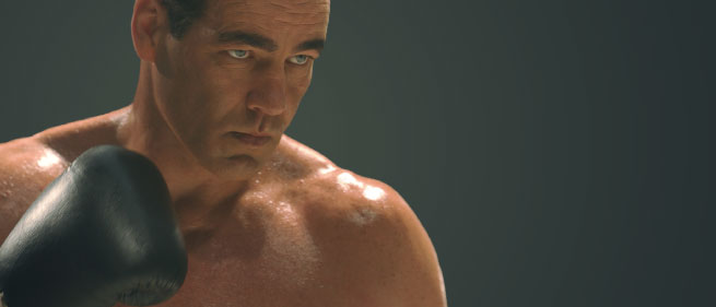 Das mussten wir bei den Lewis-Kämpfen machen, insbesondere bei dem zweiten, der ja nur 124 Sekunden gedauert hatte, da musste man schon sehr authentisch bleiben. Das ist gar nicht so problematisch gewesen, denn nicht nur ich war Boxer, sondern auch meine Partner im Ring waren professionelle Boxer. Da spielt eine gefühlvolle Arbeit eine Rolle, die setzt man bei seinem Gegenüber voraus, damit der Schlag von der Wucht und der Substanz her so minimiert wird, dass es danach trotz des Treffers noch weitergehen kann. Es gab zwei, drei Probanden, die nicht diese Professionalität hatten und es mir deswegen deutlich schwerer machten. Aber für die großen Kämpfe haben Arthur Abraham, Alexander Frenkel, Enad Licina und vor allem Yoan Pablo Hernández, der Joe Lewis hervorragend gespielt hat, es mir da wesentlich leichter gemacht. Denn diesen Jungs kann man vertrauen, denen kann man auch mal eine offene Seite anbieten und getroffen werden, ohne dass man dabei ernsthaft zu Schaden kommt.