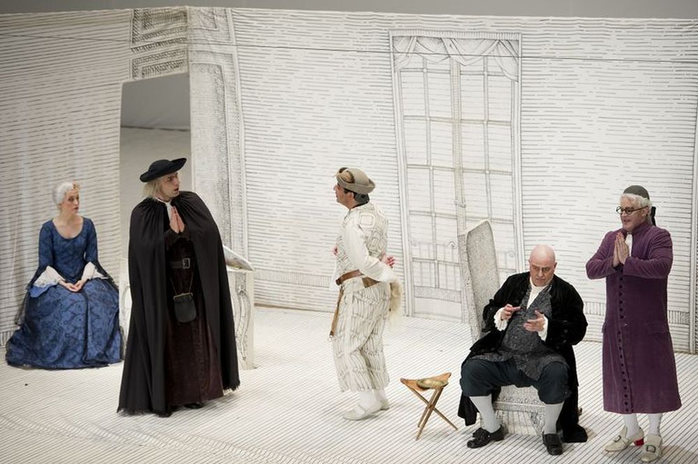 Neben der heiteren Geschichte – ein bisschen Liebe, ein bisschen Drama, Herzschmerz, viele Verwirrungen und am Ende ein glückliches Paar – begeistert Rossinis Oper bis heute mit bravourösen Solo-Arien, schönen Ensemblestücken und Melodien mit Ohrwurmcharakter. 1968 entstand in Berlin die Inszenierung der vom Tanz kommenden Regisseurin Ruth Berghaus. Ihr, die sich zuvor gerne Werken mit politischem Hintergrund gewidmet hat, gelang eine Inszenierung, die zwar der Komischen Oper Rechnung trägt, zugleich aber durch die Umsetzung im Stile der Commedia dell’arte und die regelrecht choreographierten Bewegungen alles andere als klamaukig wirkt. Eng verknüpft ist ihre Inszenierung mit den zeitlosen Kostümen und Bühnenbild von Achim Freyer mit seiner rokokohaften Bühne in gedecktem Weiß und einem Gefühl von „Bühne auf der Bühne“. Nach über 350 Aufführungen in mehr als 50 Jahren, die ausschließlich in Berlin stattfanden, ist die legendäre Inszenierung nun zum ersten Mal außerhalb Berlins zu sehen.