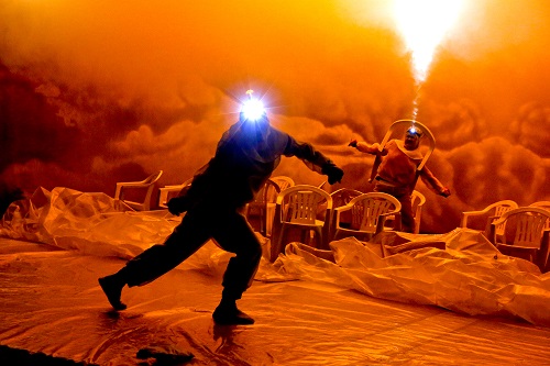 Bei der Ankunft auf diesen Planeten eröffnen Jing Xiang und Gina Haller im Bann dieser Dämonen noch einen Dialog-Ping-Pong, der Mitmenschen anhand ihrer Herkunft dingfest macht. „Wo kommst Du her?“ Herne lässt das Gegenüber nicht gelten. Bali? Pakistan? In der Utopie, von der dieses Stück erzählt, gehören diese sprachlichen Werkzeuge der Einordnung und Ausgrenzung nur noch zu den Ruinen einer vergangenen Zeit.