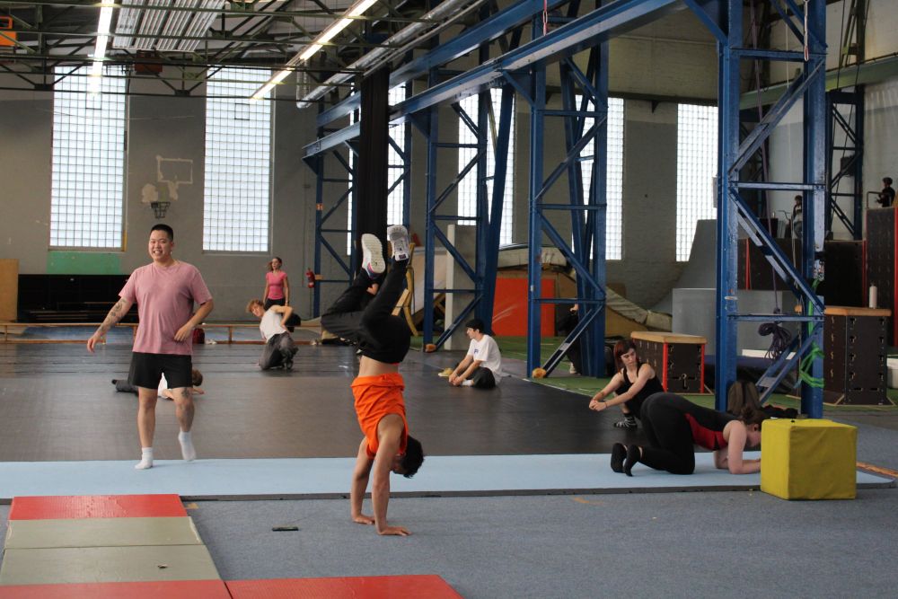 Das Team des Open Space besteht aus vier Festangestellten und einem Pool aus professionellen freien Trainer:innen, von denen acht regelmäßig in die Workshops und Trainingseinheiten eingebunden sind. Was im Open Space passiert, ist sowohl Sache des Teams als auch der Teilnehmenden, deren Vorschläge und Ideen berücksichtigt werden. „Ein Beispiel dafür ist die Schaumgrube. Die Idee kam von Leuten aus unterschiedlichen Disziplinen“, erklärt Kiunka. Deshalb führen jetzt Fahrrad-Rampen zur Grube. Man kann sich aber auch von einer Plattform oder sich zuvor an Stangen an der Wand entlanghangeln.