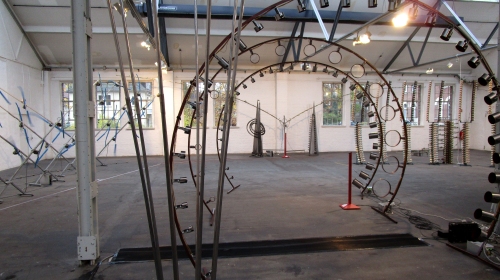 Elektromotoren, seriell befestigt an Metallrahmen, offene Tore an denen Schläuche rotieren, fast könnte man glauben, Jean Tinguelys Kinetik hätte Pate gestanden, doch die verwirrende und doch unaufgeregte Installation in den Herner Flottmann-Hallen dient eigentlich eher der filigranen Spurensuche im Geräuschekosmos, pompöse Sounds an ebenfalls filigranen Bauten, das ist die Urheberschaft des Herner KlangkünstlersChristof Schläger. „Urbane Klänge“ nennt er die Auswahl ausüber tausend klingenden Apparaturen, mit denen er die ursprünglichen Klänge im modernen Leben sucht und tatsächlich findet.
