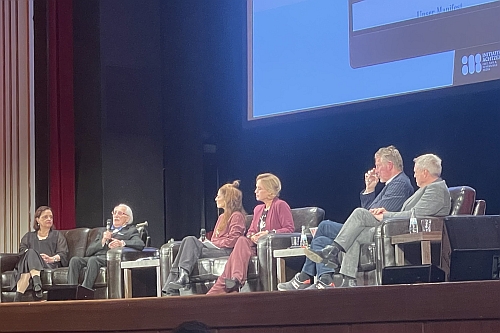 Gut 800 Menschen kamen in Deutschlands größtem Kinosaal zu einem emotionalen Abend zusammen, der sich der komplexen Frage widmete, welche Rolle die Freiheit des Wortes in Zukunft für die Freiheit der Gesellschaft spielt. Beeindruckend war zunächst ein Blick in die Vergangenheit. Ausschnitte aus dem Film „Führer und Verführer“, präsentiert vom Produzenten Michael Souvignier, zeigten NS-Propagandaminister Joseph Goebbels bei seiner Arbeit, der Hetze, der Lüge, der Produktion von, ja, Fake News; der Film zeigt sowohl Originalaufnahmen als auch Robert Stadlober als Goebbels. „Was wahr ist, bestimme ich!“, brüllt er sein Propaganda-Team an. Im Film kommen auch Zeitzeugen zu Wort, darunter Leon Weintraub. Der 99-jährige Ausschwitz-Überlebende kam aus seiner Wahlheimat Schweden ins Essener Kino und zeigte sich entsetzt über das Erstarken rechter Bewegungen in ganz Europa und speziell der AfD in Deutschland. Gleichwohl hält er fest an den Idealen der Aufklärung und erklärte, weiterhin Optimist zu sein.