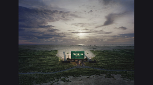 Vor allem bei Thomas Wrede intensiviert sich das Moment der Zeitlichkeit. Sei es dass die Architektur auf vergangene Epochen weist, sei es dass die Folgen einer Naturkatastrophe zu sehen sind. Wrede setzt dazu Miniaturmodelle in eine vorgefundene landschaftliche Situation. Die Dimensionen verschieben sich. Die Irritation des Überschauenden (wie aus einem Hubschrauber) wird noch durch die Schärfe der Details gesteigert. Und Wrede komponiert seine fotografischen Inszenierungen wie ein altmeisterliches Gemälde. Er forciert mit Blickachsen den Sog in das Geschehen, das zudem mit der Attraktivität der glühenden Farben lockt.