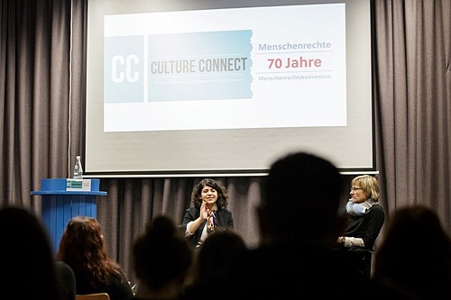 Sexuelle Gewalt gegen Frauen ist ein Machtinstrument in Kriegen. Es könne sich als perfider erweisen als jede Zerstörung einer Stadt, sagt Kati Stüdemann, die Leiterin des Bildungswerk Vielfalt Dortmund und Moderatorin des Abends. Denn sexuelle Gewalt wirke über Generationen und durchdringe Denken, Fühlen und Beziehungen der Menschen. Es sei ein Thema, das noch immer nicht die nötige Aufmerksamkeit bekomme. Die Veranstaltungsreihe „Culture Connect“ im Haus der Vielfalt möchte anlässlich von 70 Jahren UN-Menschenrechtskonvention solchen vernachlässigten Fragen der Menschenrechte nachgehen.