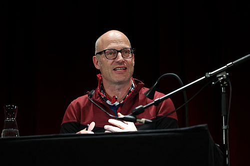 Die Sorge, dass die Eröffnung des Festivals mit langatmigen Reden starten würde, ist unberechtigt: Tobias Bock und Angela Furtkamp als Verantwortliche für das Programm der Lit.Ruhr und der mindestens ebenso wichtigen lit.kid zählen zwar Sponsoren und Partner auf, heben Kooperationen und einzelne Programmpunkte hervor, doch überraschend schnell überlassen sie die Bühne demjenigen, für den an diesem Abend rund 1.200 Menschen gekommen sind.