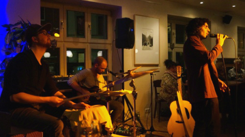 Ein ausgedehntes Intro mit Schlagzeug, Bass und sauberen Gitarrenmelodien stimmte das Publikum auf die Band ein. Sänger Juri, hauptverantwortlich für den Kontakt zu den Gästen, betrat wenig später die Bühne und begrüßte die Besucher mit einem ruhigen Stück. Technische Probleme nötigten Schlagzeuger Jan und Gitarrist Pierre anfangs, leiser zu spielen; das tat der Atmosphäre aber keinen Abbruch. Von Beginn an konnte zu den Stücken des Trios verträumt auf dem Stuhl mitgeschaukelt werden. Trotz betont ruhiger, häufig auch eingängiger Rhythmen überzeugte Musikstudent Jan an seinem Instrument mit Routine und der sicheren Beherrschung verschiedener Techniken sowie der Übergänge zwischen ebenjenen. Das aus wenigen Elementen bestehende Schlagzeug schränkte ihn also keineswegs in seinen Variationsmöglichkeiten ein.