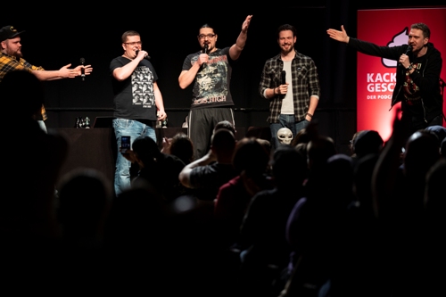 Vereinzelte Leute im Publikum hatten keine Ahnung, worauf sie sich eingelassen haben. Es ist auch schwer zu sagen, ob die Leute, die sie mitgebracht haben, ihre Freunde oder Feinde sind. Denn die Kack & Sachgeschichten sind nicht für jeden etwas, aber doch für einen gefühlt relativ genau einzugrenzenden Schlag Mensch. Wahrscheinlich gehören Sie auch dazu, wenn Sie diesen Artikel bis hierhin gelesen haben. Und dieser Schlag ist gar nicht mal so gering, denn dass ein Podcast auf Deutschlandtour mit ausverkauften Sälen geht, muss auch erst einmal geschafft werden. Über die vergangenen dreieinhalb Jahre haben die Kack und Sachgeschichten eine treue und aktive Fangemeinde gefunden. Und sie wächst immer weiter.