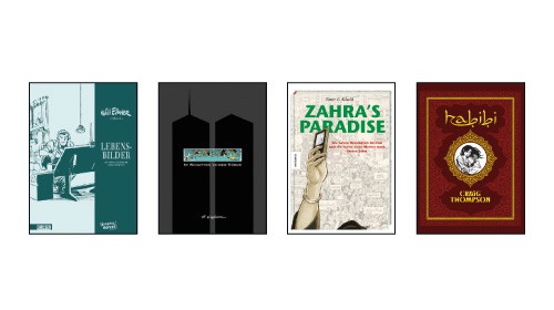 Craig Thompsons „Habibi“ ist ebenfalls im Nahen Osten angesiedelt: Er erzählt in seinem Magnum Opus (650 Seiten) von den verschleppten Kindern Dodola und Zam, die sich in der Wüste finden, verlieren und erneut finden. Die Story ist abenteuerlich in einer altertümlich anmutenden Gegenwart angesiedelt, die Umgangsformen sind archaisch. Alleine das ist bewegend und berührend. Doch Thompson umspielt die Geschichte mit philosophischen und religiösen Texten, arbeitet an der Schnittstelle zwischen Kalligraphie und Zeichnung und entfaltet eine allumfassende Betrachtung von Leben, Liebe und menschlichem Miteinander (Reprodukt).