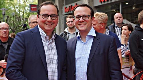 Ein ähnliches Gefühl wie dieses Flirtszenario erzeugt auch Kerstin Poltes Debüt-Spielfilm „Wer hat eigentlich die Liebe erfunden?“. Es ist einer dieser Filme, die man von Anfang an mögen will. Liebevolle Opening Credits, ein schmissiger Song, wohl komponierte Einstellungen, die einen emotional und ästhetisch auf das vorbereiten, was kommt. Und auch während dieser Exposition hoffen wir inständig, dass der erste, positive Eindruck nicht zerstört werden möge. Diese Hoffnung setzt in diesem Fall unterbewusst schon vor der Filmvorführung ein. Die Regisseurin und HauptdarstellerInnen Meret Becker, Karl Kranzkowski und Annalee Ranft nehmen sich Zeit auf dem roten Teppich, machen Faxen vor der Fotowand, wirken bodenständig, sympathisch. Essens Oberbürgermeister Thomas Kufen posiert mit seinem Mann David Lüngen, Joachim H. Luger (besser bekannt als Hans Beimer aus der „Lindenstraße“) versucht sich mit Sonnenbrille vorbei zu schleichen.