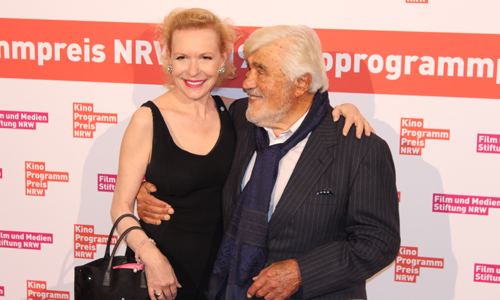 Bevor schließlich die NRW-Kinobetreiber im Mittelpunkt standen, zog man die Verleihung des Herbert-Strate-Preises für herausragende Verdienste um Film und Kino an den Schauspieler Mario Adorf vor, die bislang stets als Höhepunkt den Ausklang der Kinoprogrammpreisverleihungen bildete. Auf die 89jährige Kinolegende hielt seine Kollegin und Freundin Sunnyi Melles eine berührende Laudatio. „Je mehr Gedanken ich mir über ihn mache, desto seelenverwandter wird er mir. Durch sein Agieren und Reagieren werden alle seine Leinwandpartner an seiner Seite noch besser – das liegt an seinem Einfühlungsvermögen und seinem Eros, denn Mario Adorf ist auch sehr sexy“, würdigte Melles den Geehrten, bevor sie a cappella „L’important c’est la rose“ anstimmte und Adorf eine weiße Rose überreichte. Der Herbert-Strate-Preisträger war gerührt angesichts dieser „unglaublichen Laudatio“ und wünschte sich in seiner Dankesrede, dass wieder mehr junge Leute den Weg ins Kino finden – und die Gewaltbereitschaft unter ihnen wieder zurückgehe, die sich in Attentaten und Morddrohungen gegen Politiker derzeit auf unschöne Weise manifestiere. Diese Woche startet mit „Es hätte schlimmer kommen können – Mario Adorf“ eine Dokumentation von Dominik Wessely in den Kinos. Der Regisseur erzählte im Gloria, dass ihn der Kölner Produzent Herbert Schwering mit Adorf bekannt gemacht habe. Nachdem er die Bühnenshow des Schauspielers gesehen hatte, in der dieser sein Publikum mit Geschichten aus seinem Leben begeisterte, reifte in Wessely der Plan, diese Geschichten in einer Kinodokumentation festzuhalten.
