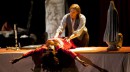Wenn Titus aus seiner Kaiserloge hinabschaut auf die Bittsteller seines Volkes am untersten Ende der Treppenanlage, wirklich aus schwindelnder Höhe, dann wird einerseits die Gott gleichende Macht des Römers präsent und anderseits die Winzigkeit und das Ausgeliefertsein des Untertanen, im Staub zertreten.