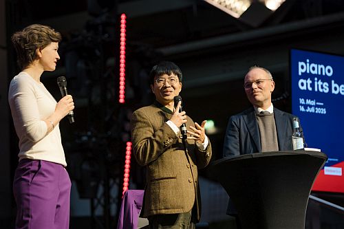 Pianist Kit Armstrong reiste aus Wien eigens zur Pressekonferenz im Essener Colosseum angereist, um gemeinsam mit Peter Gortschlüter, Direktor des Essener Museum Folkwang, seinen Beitrag für das Klavierfestival vorzustellen. Er wird in einigen Räumen dieses Kunstmuseums unterschiedliche Tasteninstrumente aufstellen, um auf ihnen musikalisch mit den dort ausgestellten Werken zu interagieren (22. bis 25. Juni). Auf Anhieb war letztes Jahr die neue Reihe „Klavier & Elektronik“ ein großer Erfolg. Sie wird an drei Abenden fortgesetzt, wieder in der Heilig-Kreuz-Kirche in Gelsenkirchen (22. und 23. Mai, 6. Juni).