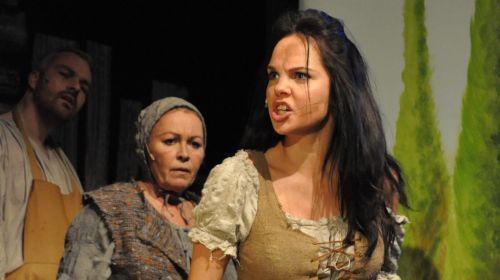 Genau „zaubert“ Ulrich Wiggers den Broadway ans Aachener Grenzlandtheater. Um es mit dem Hit-Song der Herausforderung, Mitch Leighs (Musik), Joe Darions (Liedtexte) und Dale Wassermanns (Buch) fünffachem Tony Award-Gewinner aus dem Jahre 1965 „Der Mann von La Mancha“, zu sagen: Er macht den „unmöglichen Traum“ wahr. Auch dank des genialen Bühnenbilds von Matthias Winkler, das sich je nach Handlungsbedarf („Können wir eine Kirche haben?!“) wie ein Pop-up-Kinderbuch aufklappt, und dank der einfallsreichen musikalischen Einrichtung von Stephan Ohm, der die Musiker ins Schauspiel integriert und die Schauspieler zum Instrument greifen lässt, wird das hintergründige Spiel um den Dichter Cervantes (wunderbar spinnert: Kasper Holmboe), der mit seinem Diener (pfiffig: Volker Metzger) in den Verließen der Inquisition landet und den Mitgefangenen ein Spiel abtrotzt, indem er den „Ritter von der traurigen Gestalt“ gibt, der Windmühlenflügel für Riesen hält und die Hure Aldonza (berührend verrucht: Leila Vallio) zu seiner Traumfrau Dulcinea erkürt, zur gleichsam nachdenklichen stimmenden wie unterhaltsamen Parabel auf Sehnsucht nach einer besseren Welt. Wiggers Regiekunst entführt dabei das großartig zusammenspielende Ensemble in Musical-Höhen, die man bei diesen äußeren, theatertechnischen Voraussetzungen nicht erwartet hätte.