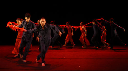 Strawinskys Opferschlacht ist dafür eine ideale Vorlage. Li Hanzhong und Ma Bo spielen das Thema in ganzer Breite aus. In roten Tüchern fliegen die Formationen durch die Luft, aber nur als ironische Zitate von Maos Roten Garden. „All River Red“ heißt die Choreographie und Flüsse aus Strömen von Blut sind im roten Licht auch auszumachen. Ebenso wie die Massen die niedergemäht werden. Alle sind Opfer, wenn schließlich auch an einem, das hilflos flattert wie eine angeschossene Ente, der heidnische Ritus vollzogen wird. Den entnahm Strawinsky russischen Dorflegenden, aber er passt dann doch so treffend in die zivilisierte Moderne mit ihren Rückfällen in die Barbarei.