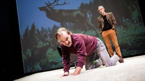 Auf der Bühne findet dagegen erfreuliches statt. Broll-Pape inszeniert wunderbar unaufgeregt um den rechten Bühnenausgang herum, ein Teppich, zwei Sessel reichen für die wechselnden Wohnungen der Freunde, nur der Hintergrund, die im Wohnraum aufgehängten Bilder unterscheiden sie extrem. Und daran entzündet sich der Streit, der sie fast auseinanderreißt. Die Regie setzt ausschließlich auf dieses Wortgefecht, das nicht einmal laut wird, aber ungemein hinterhältig und bissig. Wehren kann sich Yvan, der gerade auch noch heiraten will, gegen die egomanischen Besserwisser nicht, er verliert heulend das Gefecht und bringt doch alle wieder zusammen. Oder?