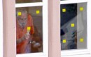 Der Maler zeigt im Abstand von 30 cm horizontal nebeneinander und versetzt übereinander aufgetragen Abdrücke eines Pinsels.